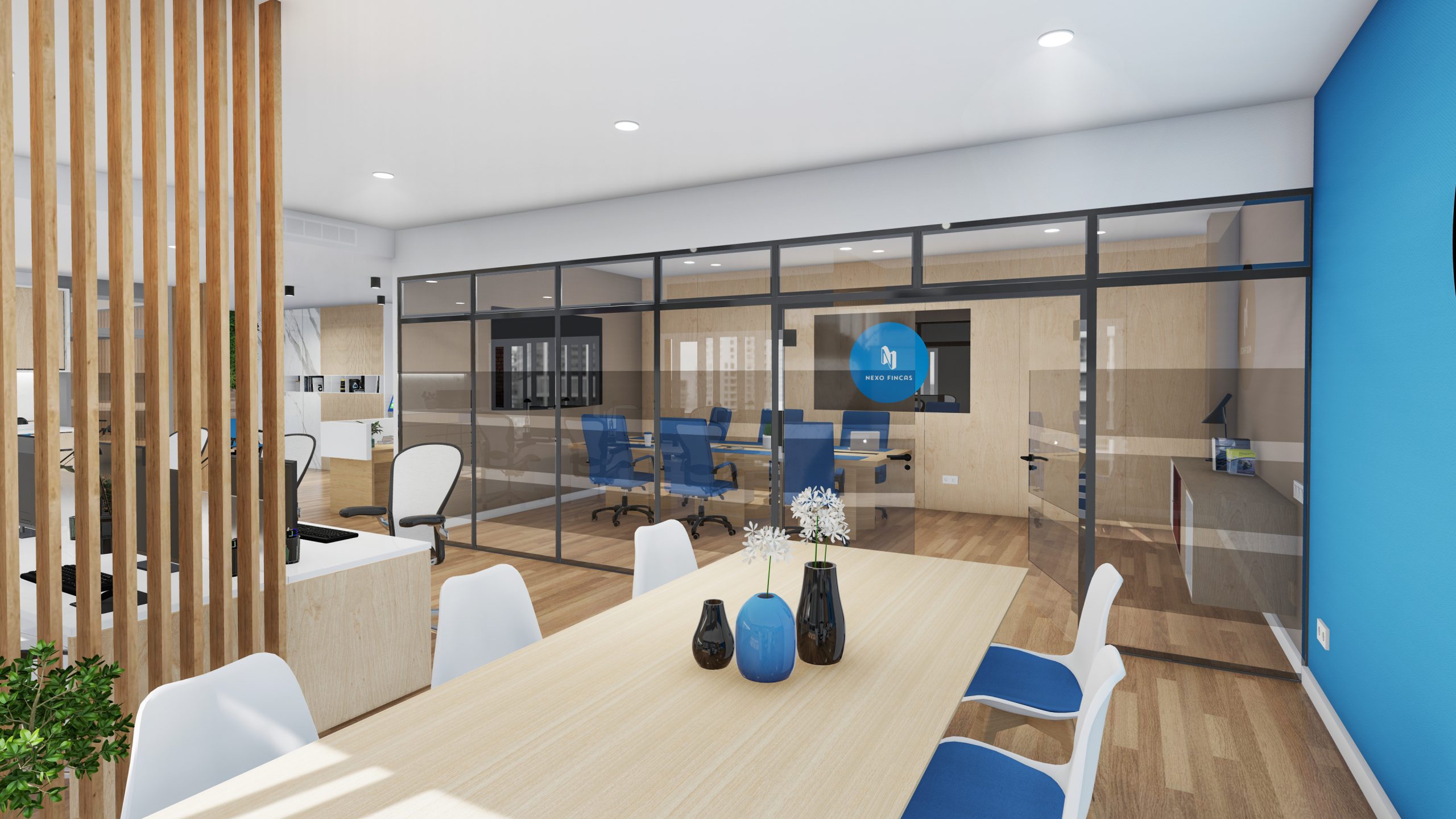 Implementación de un diseño que alinee los estándares de Nexo Fincas con las particularidades del espacio. Desde el uso de colores corporativos hasta mobiliario funcional, cada detalle se personaliza para asegurar coherencia y atractivo.